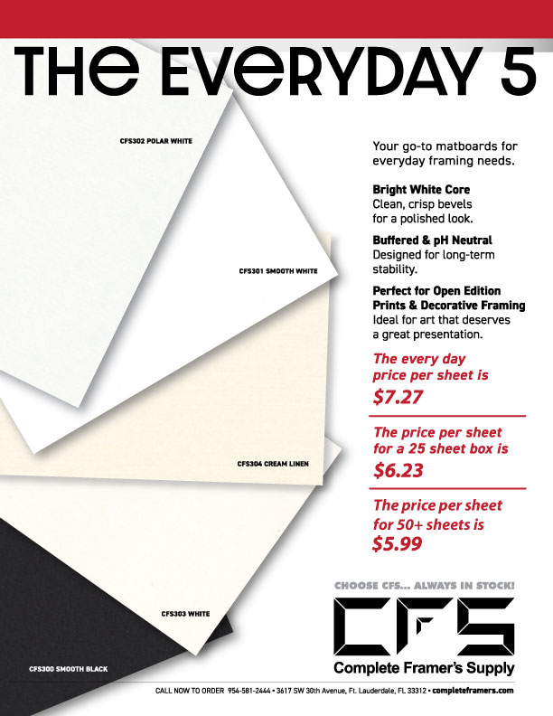 Complete Framer's Supply has serviced the South Florida Professional Picture Framing community since 1985. Complete Framer's offers delivery to most of South Florida on our extensive line of Picture Moldings, Mat Boards, Glass, Foam Board, and all Common Framing Supplies.